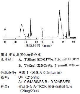 ??? 采用高性能尺寸排阻色譜法(GFC或SEC)進行多肽分離,操作簡便,不僅可用作檢測分子量的手段,還可作為純化多肽與蛋白質分解產物如多肽片斷的方法之一。可與反相色譜法(RPC)及離子交換色譜法(IEC)聯用。同時,在臨床上還通過把GFC進行比較,來推測病程的進展。