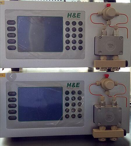 柱塞泵是目前液相色譜主流的輸液?jiǎn)卧?,特別是雙柱塞往復(fù)泵。它有一個(gè)精心設(shè)計(jì)的偏心凸輪,用同步電機(jī)或變速直流電機(jī)驅(qū)動(dòng)偏心凸輪,偏心凸輪再推動(dòng)兩活塞作往復(fù)運(yùn)動(dòng)。偏心凸輪短半徑端所對(duì)應(yīng)的活塞向外伸,使該活塞的下單向閥打開(kāi)吸入流動(dòng)相,與此同時(shí),偏心凸輪的長(zhǎng)半徑端所對(duì)應(yīng)的另一活塞被推入,使其上單向閥打開(kāi),并將流動(dòng)相送至色譜柱。具有操作方便、流速穩(wěn)定、壓力脈動(dòng)小、故障率低的優(yōu)點(diǎn)。根據(jù)流量大小一般可分為分析型和制備型。